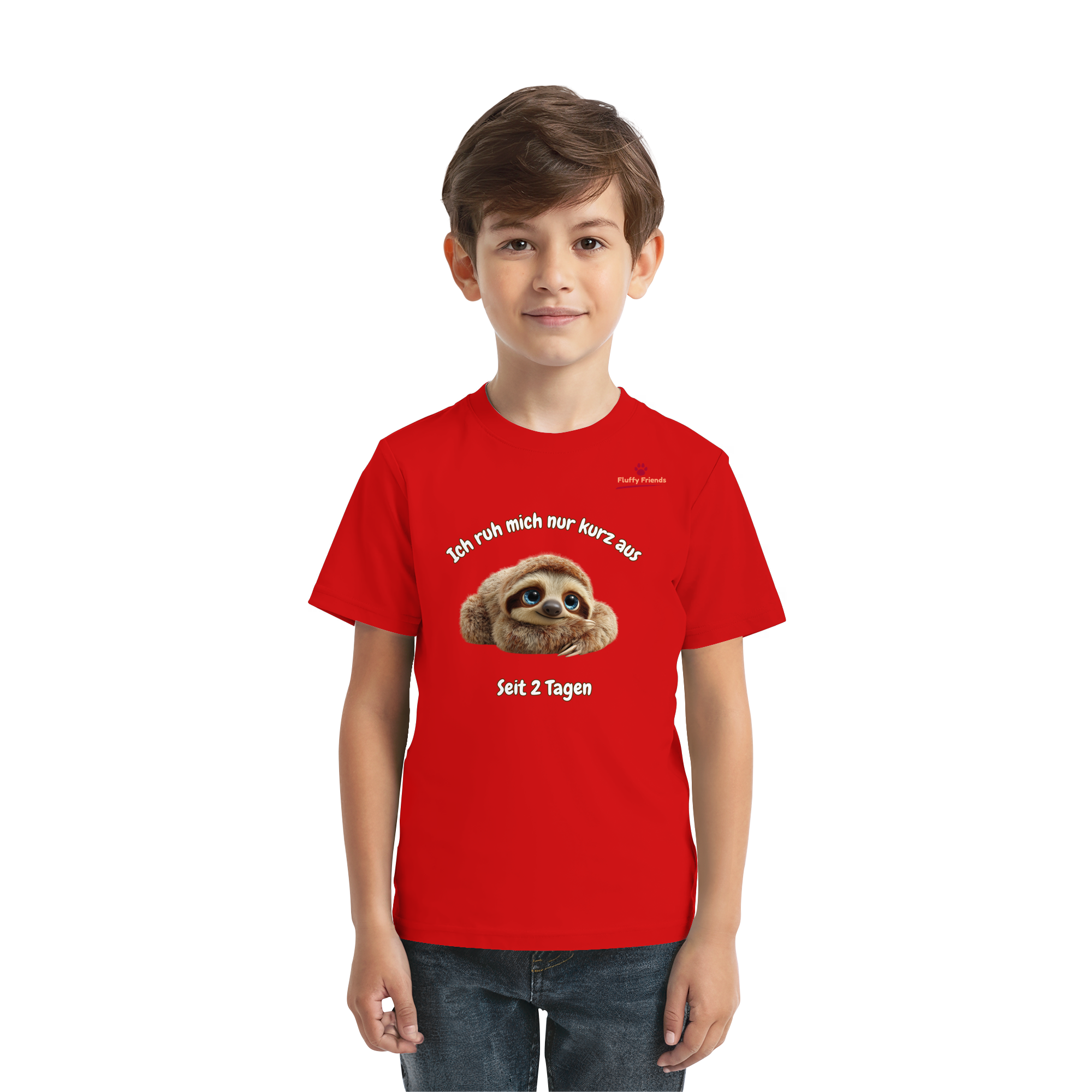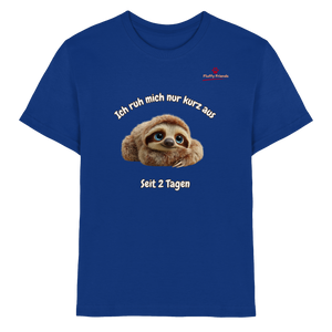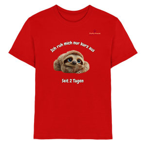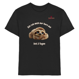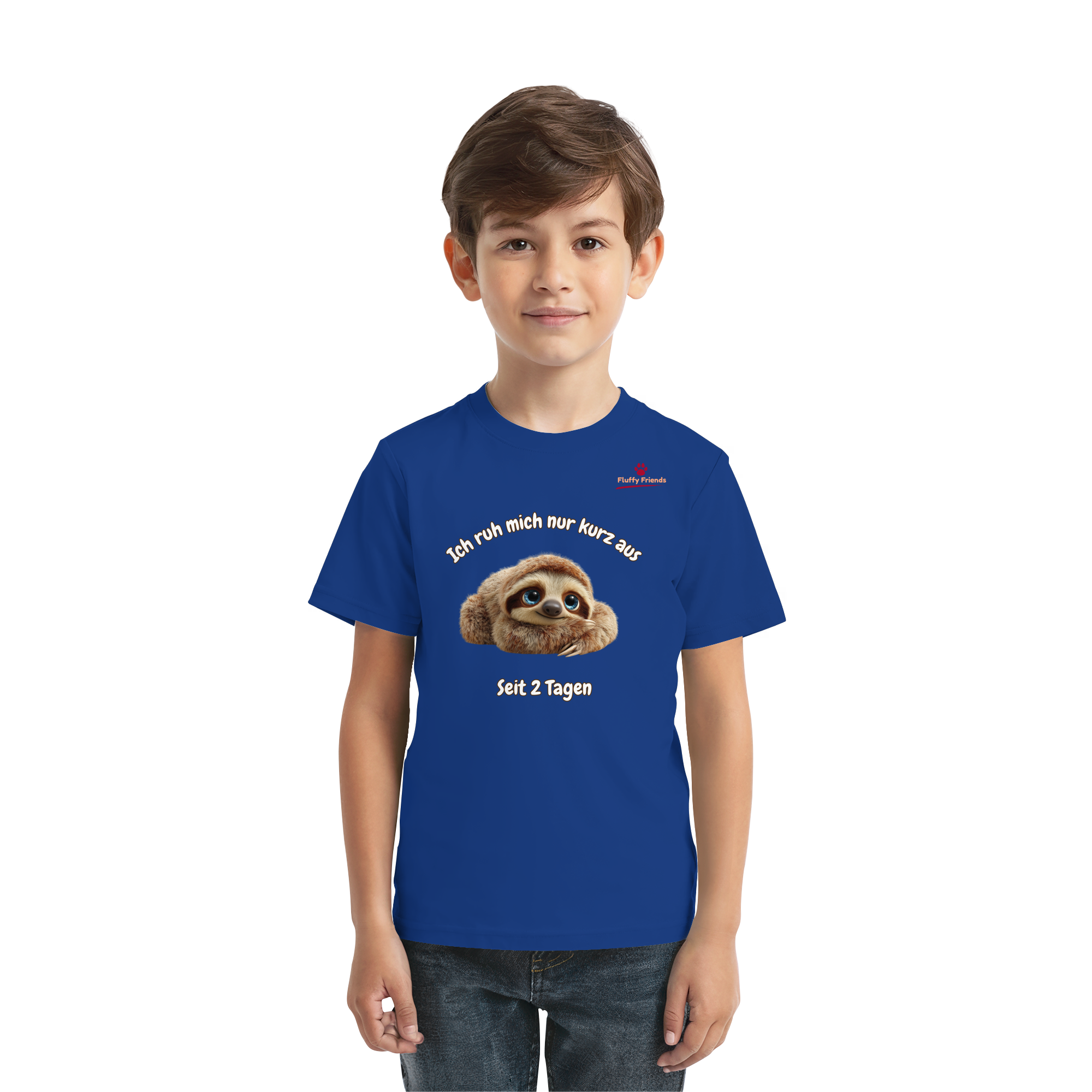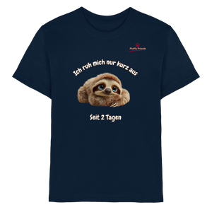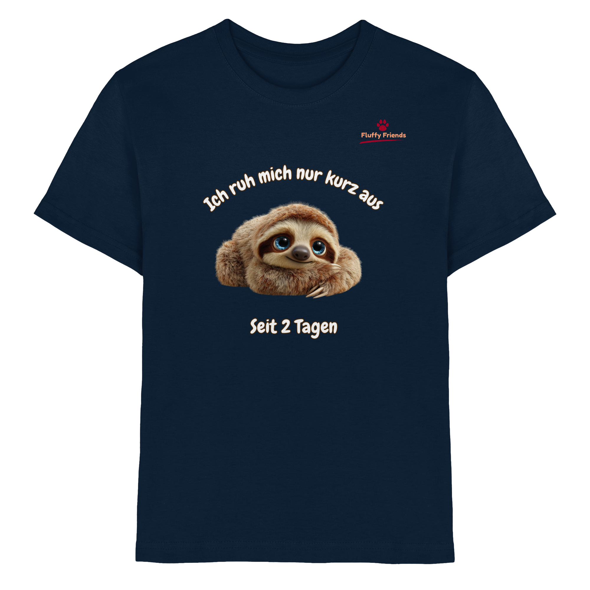 Dieses FluffyFriends-Design vereint Humor und Gemütlichkeit mit einem süßen Faultier und dem Spruch: "Ich ruh mich nur kurz aus – Seit 2 Tagen". Perfekt für kleine Entdecker, die Pausen lieben!