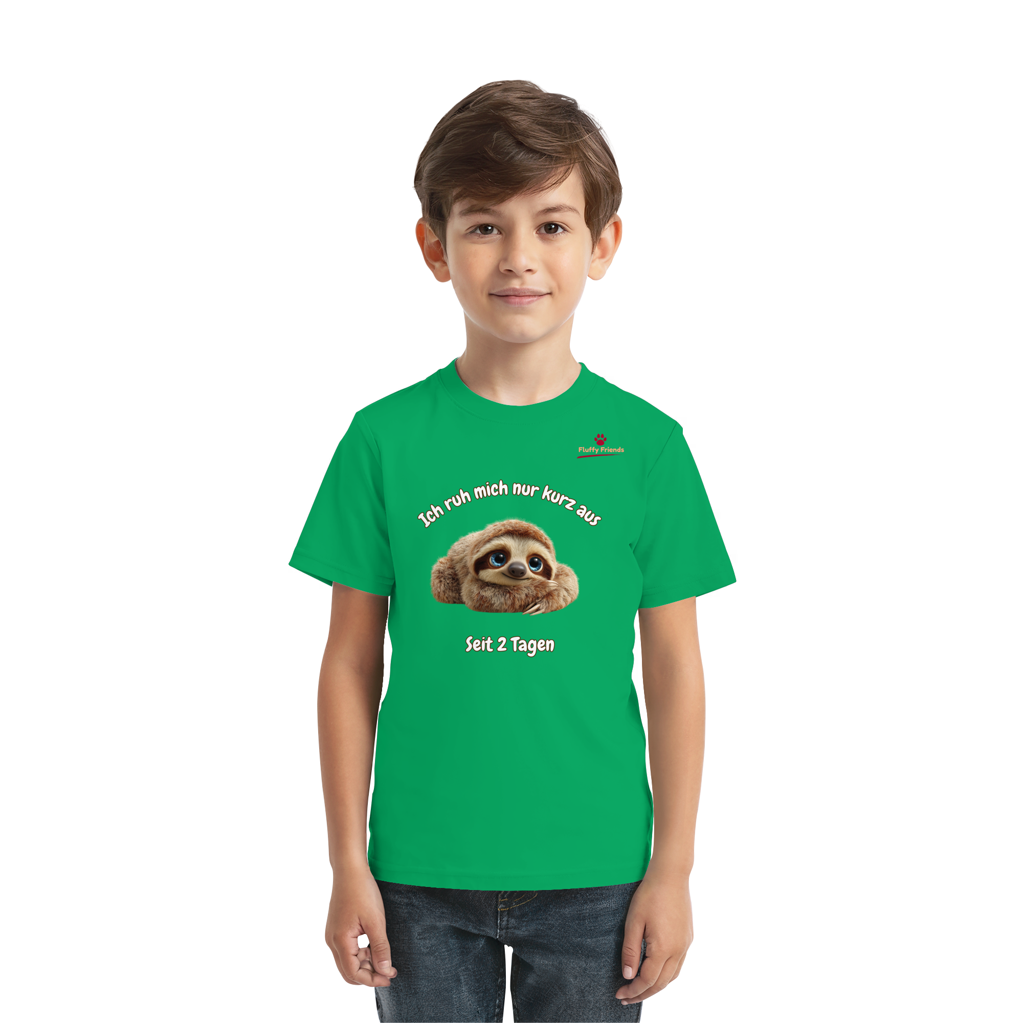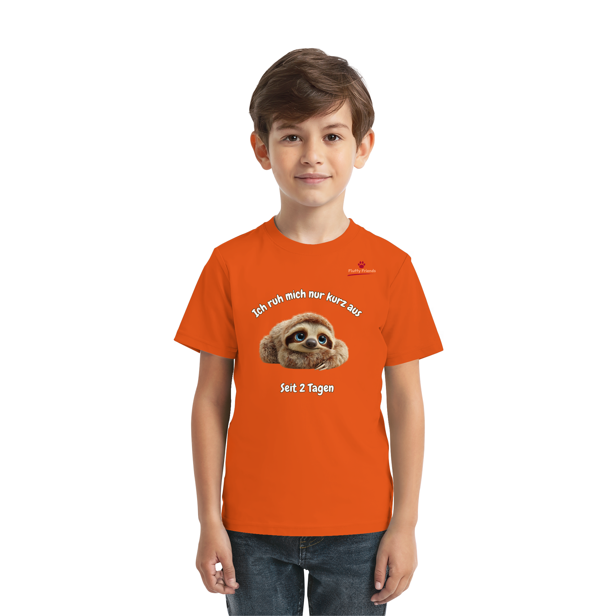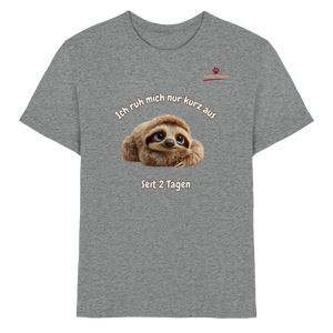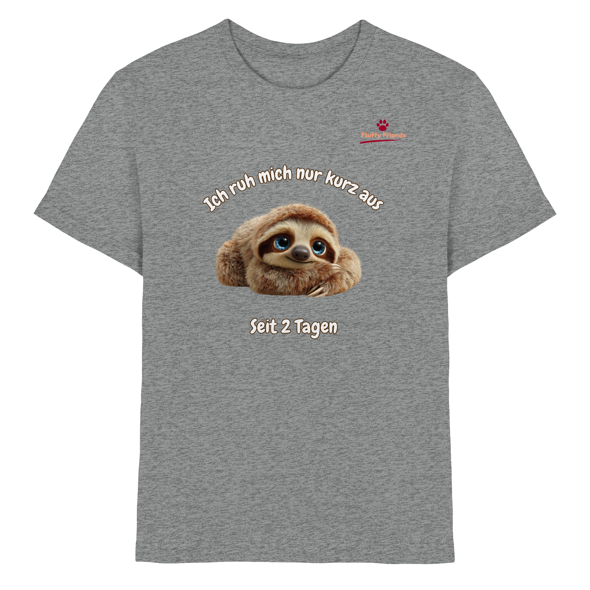 Dieses FluffyFriends-Design vereint Humor und Gemütlichkeit mit einem süßen Faultier und dem Spruch: "Ich ruh mich nur kurz aus – Seit 2 Tagen". Perfekt für kleine Entdecker, die Pausen lieben!