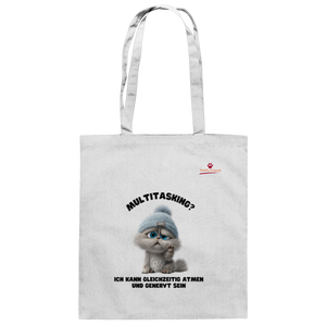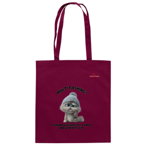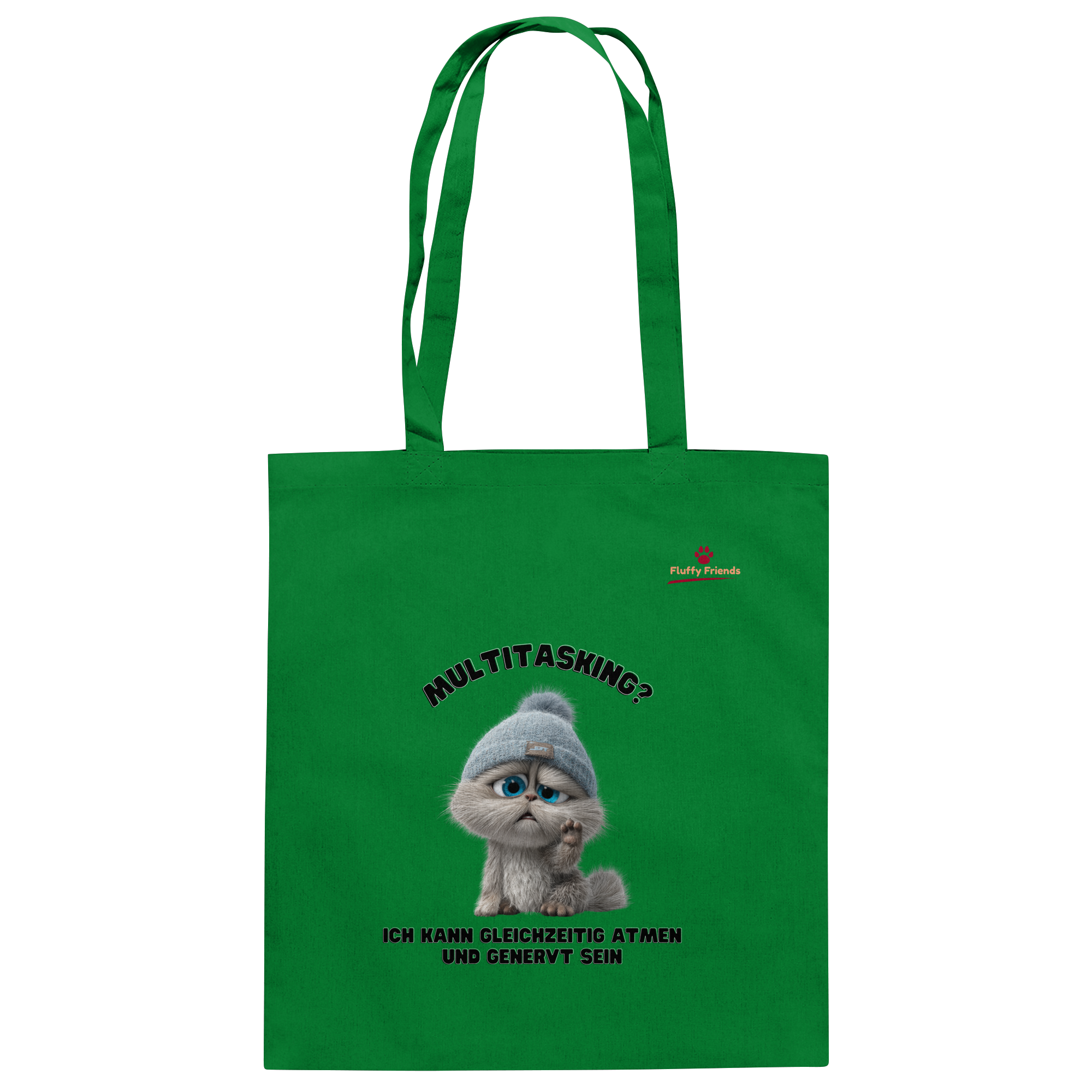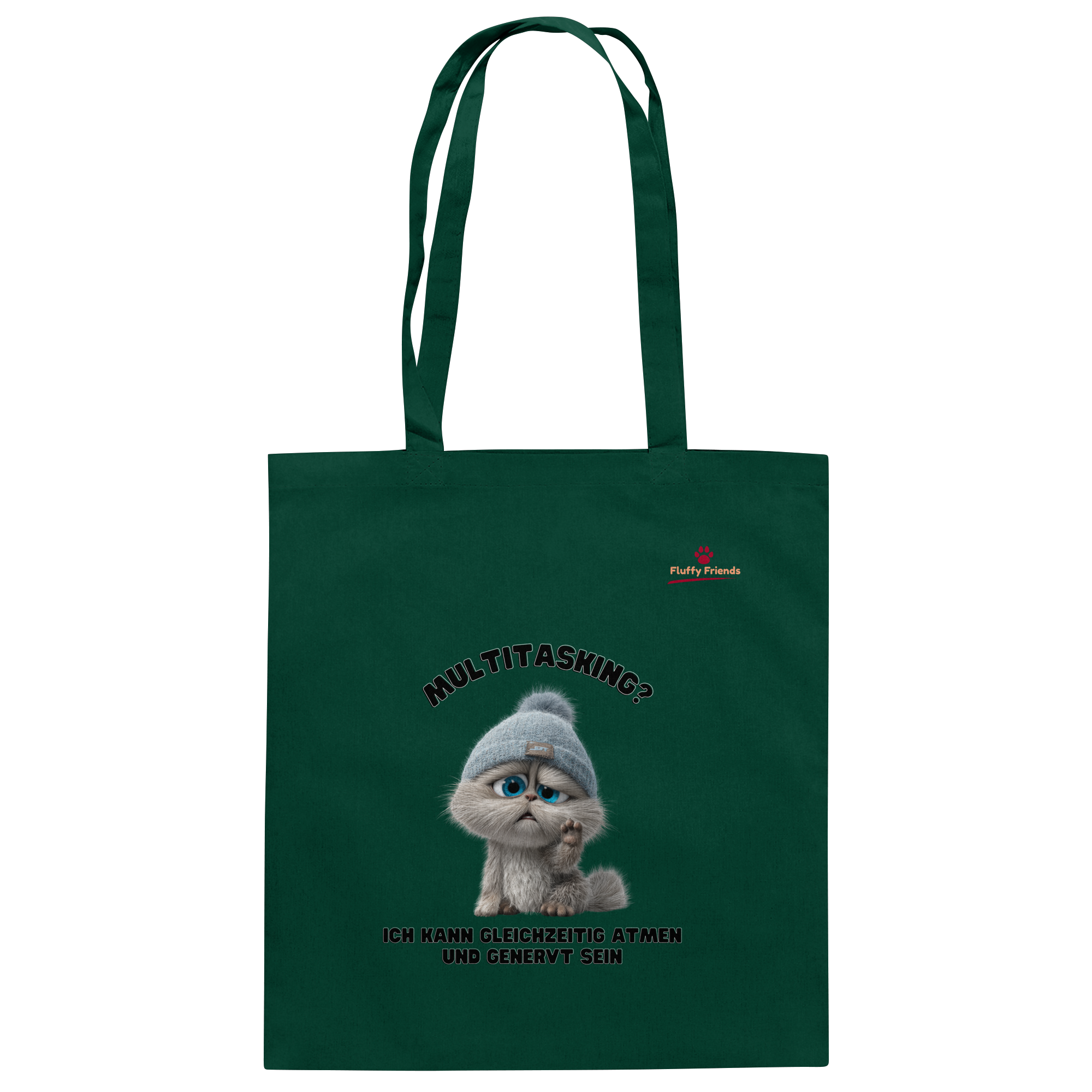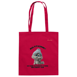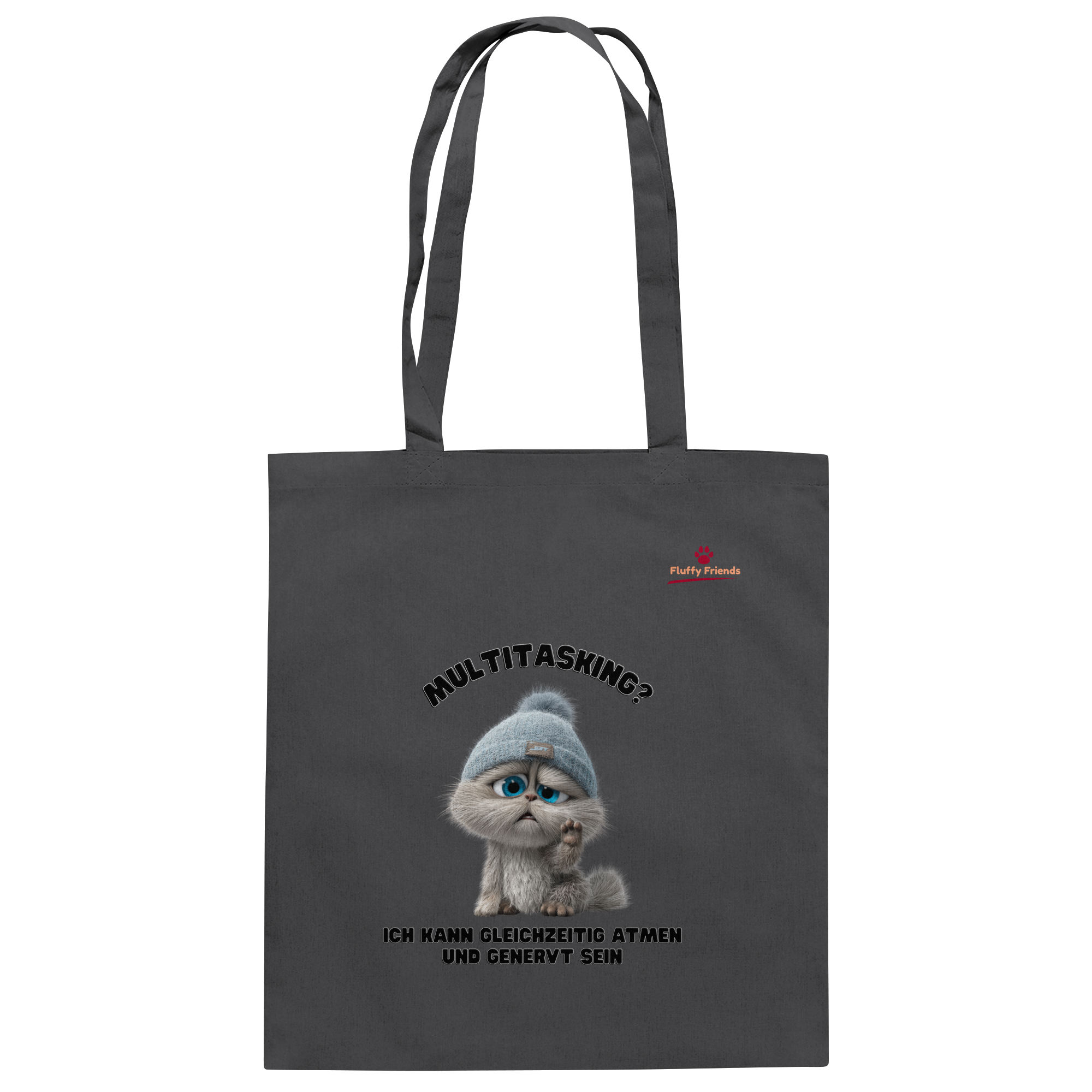 Entdecken Sie die perfekte Mischung aus Humor und Ehrlichkeit mit unserer Baumwolltasche "Multitasking? Ich kann gleichzeitig atmen und genervt sein". Das liebevolle Design von FluffyFriends zeigt eine grummelige Katze mit niedlicher Mütze, die uns allen aus der Seele spricht. Ideal für alle, die morgens schweigsam sind, bevor der erste Kaffee wirkt.