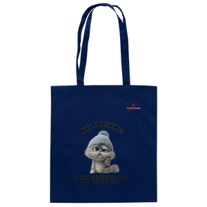 Das humorvolle Motiv kombiniert eine flauschige, grummelige Katze mit einem Hauch von Sarkasmus. Der kontrastreiche Einsatz von Blau und Grau verstärkt die emotionale Wirkung und verleiht der Tasche einen charmanten, verspielten Look.