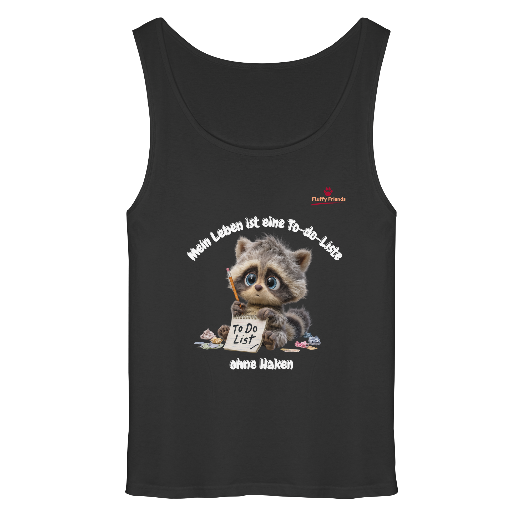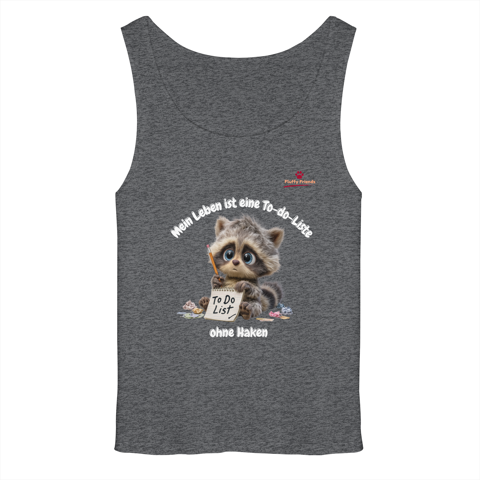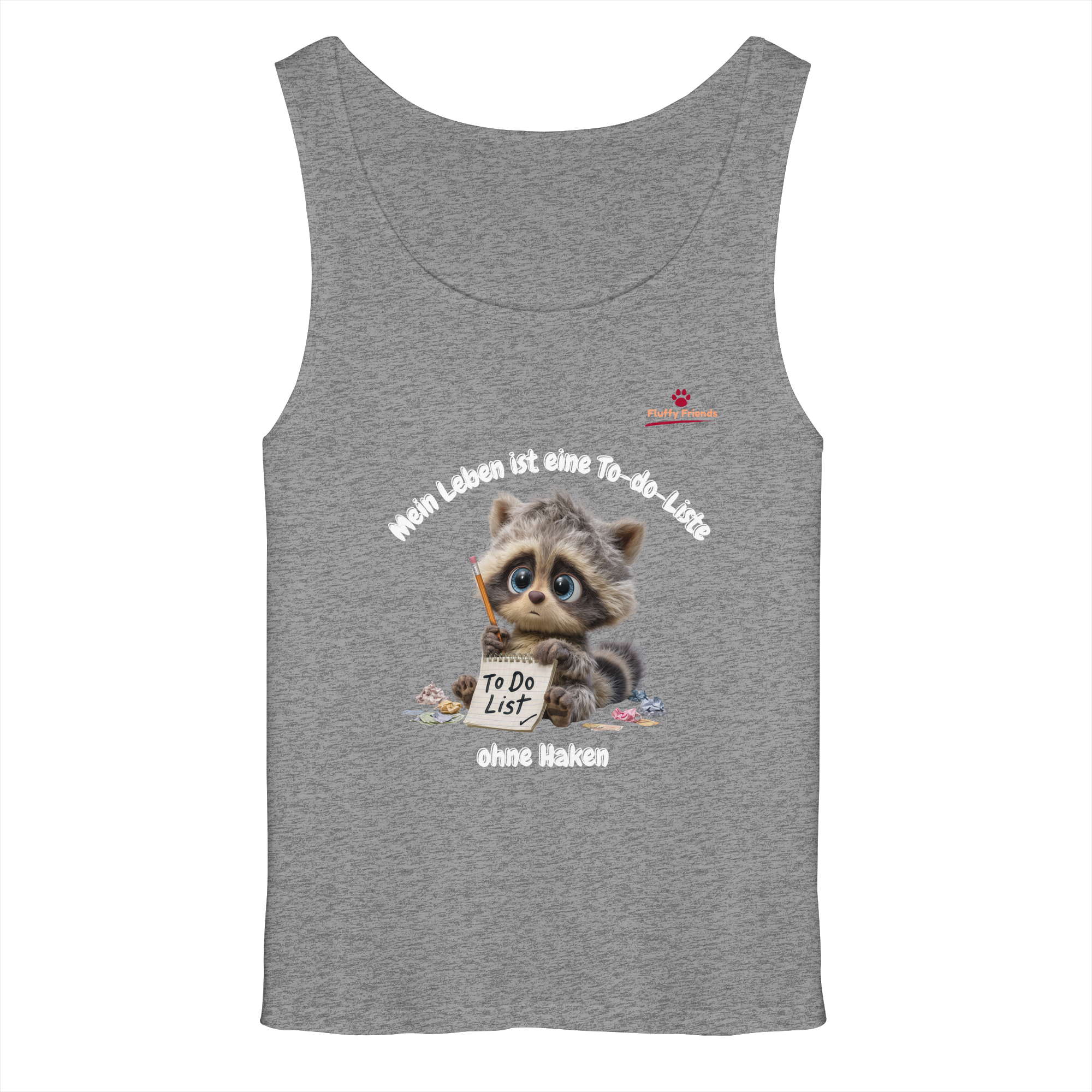Fühlst du dich manchmal von der endlosen To-do-Liste des Lebens überwältigt? Unser "Mein Leben ist eine To-do-Liste - Waschbär - Relaxed Tank Top" bringt Humor und Gelassenheit in deinen Alltag. Der süße Waschbär mit seiner unvollendeten Liste spiegelt die chaotische Realität wider, die wir alle kennen. Mit seinen sanften Braun- und Grautönen verleiht er deinem Look eine entspannte Note.