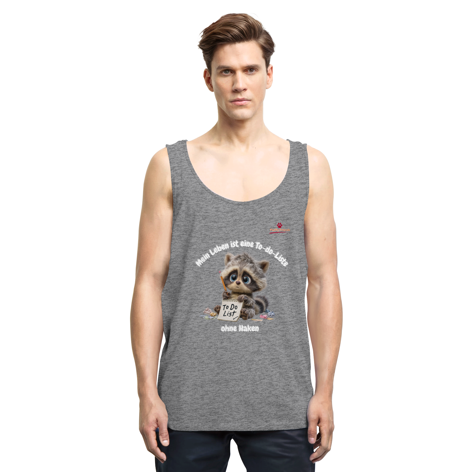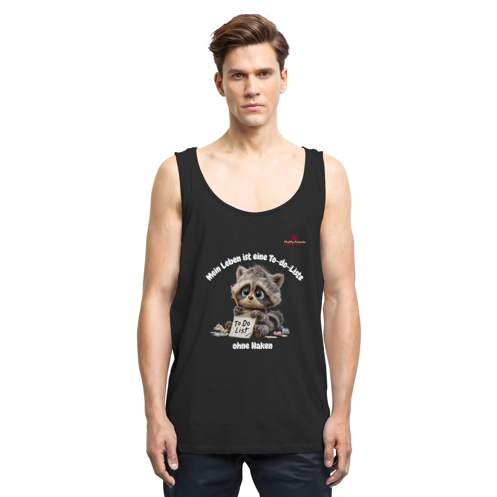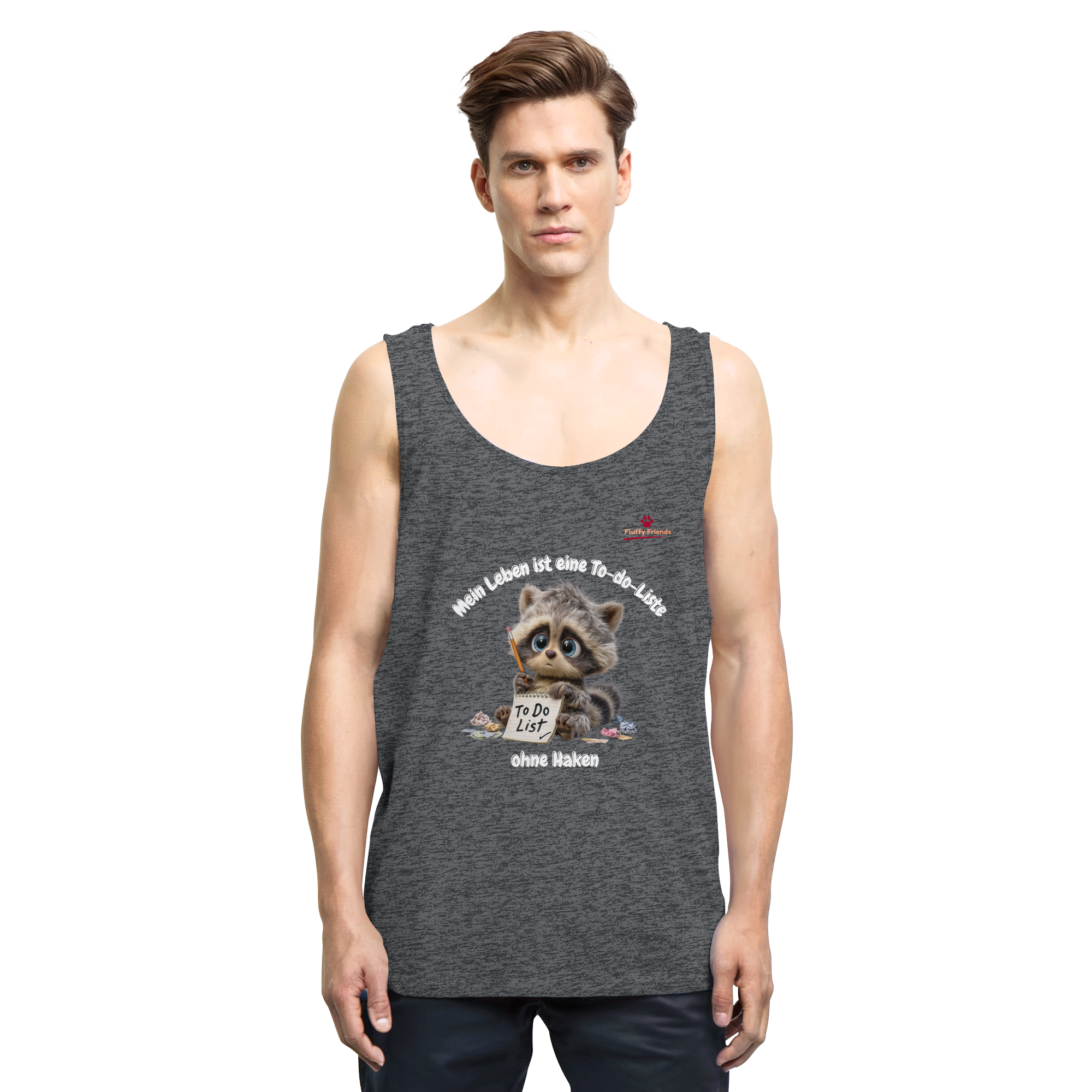 Fühlst du dich manchmal von der endlosen To-do-Liste des Lebens überwältigt? Unser "Mein Leben ist eine To-do-Liste - Waschbär - Relaxed Tank Top" bringt Humor und Gelassenheit in deinen Alltag. Der süße Waschbär mit seiner unvollendeten Liste spiegelt die chaotische Realität wider, die wir alle kennen. Mit seinen sanften Braun- und Grautönen verleiht er deinem Look eine entspannte Note.